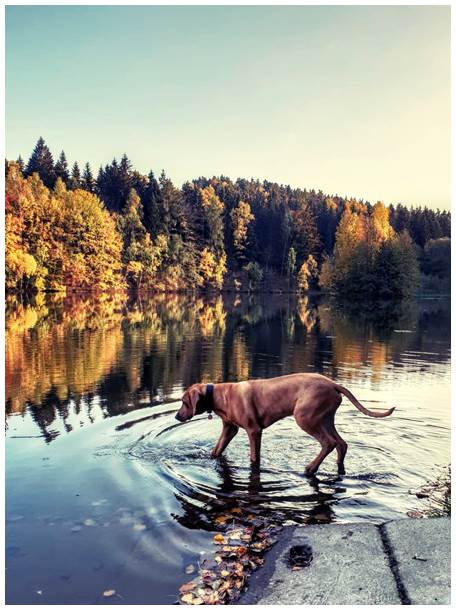 Mit anderen Hunden kommt er sehr gut aus und tollt ausdauernd. Er will sich immer gern durchsetzen, aber ab und an